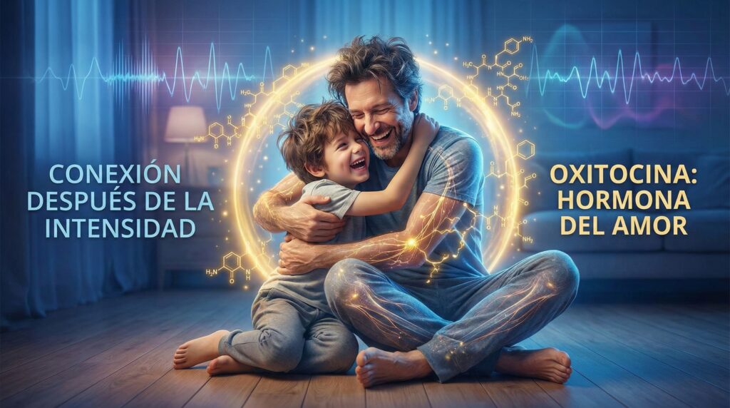 El juego brusco siempre debe terminar de la misma manera: con una vuelta a la calma y la conexión. Después de la adrenalina, un abrazo fuerte libera oxitocina (la hormona del vínculo) y reduce el cortisol.