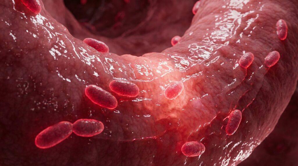 A diferencia del resto de tu flora intestinal que vive cómodamente en el centro del tubo digestivo alimentándose de lo que comes, la Akkermansia es una especialista de élite que vive peligrosamente: habita en la capa de moco (mucosa intestinal) que recubre tus paredes internas. Su trabajo es fascinante y paradójico: se «come» la capa vieja de moco para obligar a tus células a producir una capa nueva, fresca y robusta.