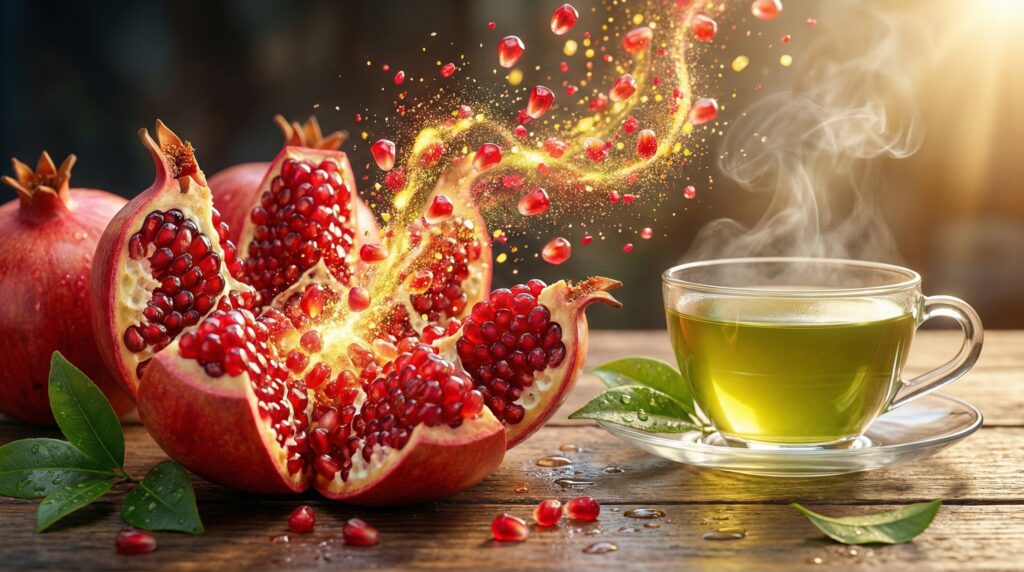 Si quieres recuperar tu maquinaria metabólica, no busques fibra barata ni avena. La Akkermansia es una sibarita: se alimenta de polifenoles, esos compuestos que dan color rojo, morado y azul oscuro a las plantas. El rey absoluto es la granada (rica en ácido elágico), seguida de cerca por los arándanos rojos (cranberry) y el té verde (catequinas). Estos alimentos actúan como fertilizante selectivo; tu cuerpo no los absorbe del todo, dejándolos llegar al colon donde la Akkermansia organiza un festín.