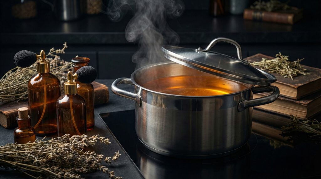 Para capturar la potencia real, debes aplicar el principio de la condensación: el agua debe hervir, apagarse, agregar las especias y tapar herméticamente de inmediato. Debes dejar que la mezcla sude y se enfríe dentro de esa cámara cerrada durante horas. Así obligas a los compuestos activos a regresar al líquido, creando una infusión saturada y potente.